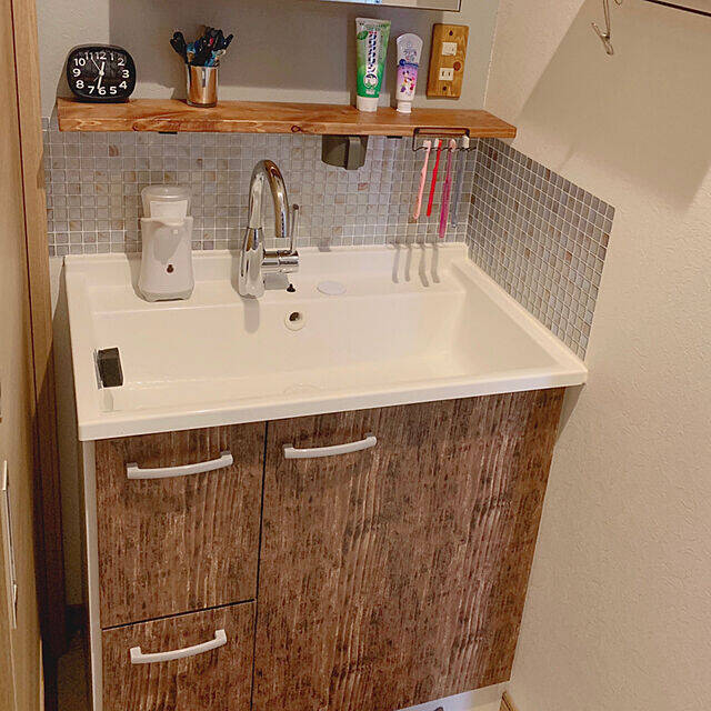 貼るだけでイメチェンできるインテリア用の粘着シート <今回紹介するDIY> 難易度 ★★☆ 予 算 ¥1000〜 賃貸物件の水回り空間、洗面台やキッチン収納などの扉はメンテナンスしやすいようシンプルなものが多く、ともすると殺風景で無機質な印象です21 年 2 月 6 日。 自宅の 2 階ユーティリティにある洗面台を diy にてリメイクしました。 いつものパターンですが、框扉&フレンチシャビーシックなカントリー家具調の仕上がりを目指しました(^^; 洗面台リメイク あいにく自宅の洗面台は既製のプラスチックの物ではないので、友人宅の洗面台をリメイクさせてもらった 。 基本構成は、ベニヤ板を両面テープで施工、プラスチックの収納カゴの代わりに針金と100均のカゴを使って収納にする。 原状